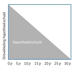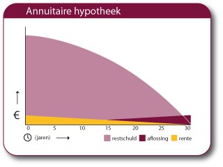 Bij deze hypotheekvorm lost u iedere maand een deel van de lening af. Het bedrag bestaat uit rente en aflossing. Aan het begin van de looptijd lost u weinig af en is het bestanddeel rente het hoogst; aan het eind van de looptijd wordt de aflossing hoger en betaalt u dus minder rente. De optelsom van aflossing en rente wordt iedere maand gelijk gehouden. Aangezien u tijdens de looptijd minder rente gaat betalen, geniet u gedurende de looptijd steeds minder belastingvoordeel van de hypotheekrenteaftrek. Hierdoor stijgen de netto hypotheeklasten gedurende de looptijd van de hypotheek wel.